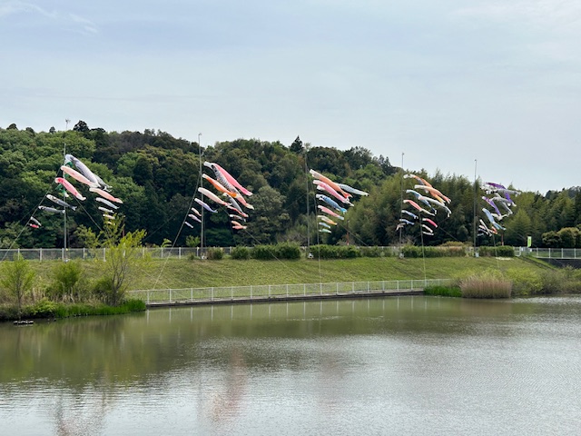 毎年開催しております「小林鯉のぼり大会」が迫ってきました。大会は小林大門下にある「調整池(カルガモの池)の畔に支柱5本を建て、70匹の大型鯉のぼりを掲揚しております。