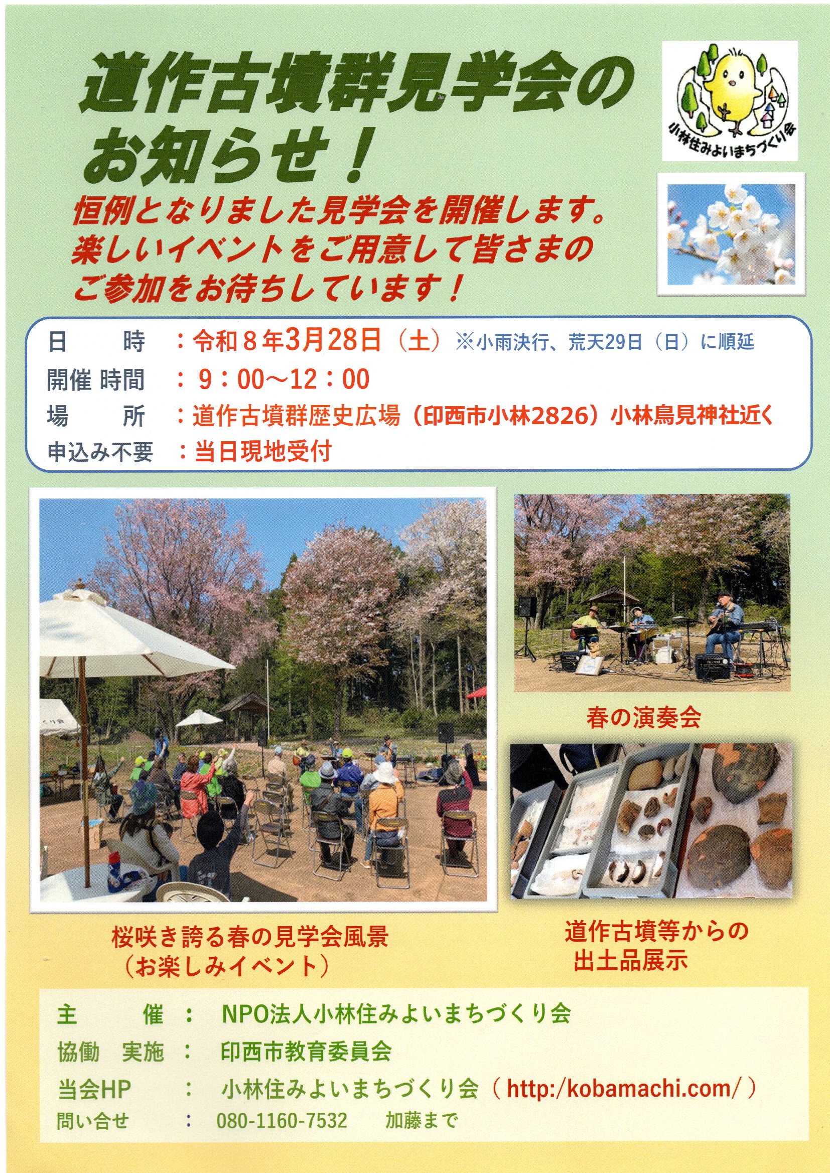 下に、「道作古墳群見学会開催のポスター」を掲載します。